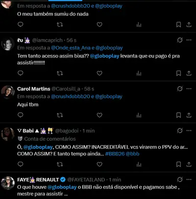 Até o fechamento desta reportagem, a Globo não emitiu um comunicado oficial detalhando as causas técnicas que levaram à interrupção do sistema. No microblog X, a equipe de suporte da plataforma limitou-se a responder as queixas com mensagens automáticas e solicitações de contato via mensagens diretas. A situação gerou repercussão imediata, uma vez que o bloqueio impediu o público de acompanhar as atrações em tempo real e as produções exclusivas do catálogo digital.